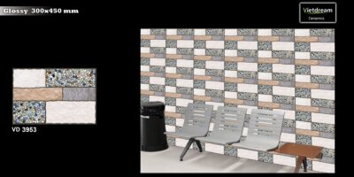 Với kích thước 300×450mm, mẫu gạch này giúp tạo điểm nhấn trang trí độc đáo, phù hợp cho nhiều không gian từ phòng khách, phòng bếp đến quán café, nhà hàng. Bề mặt men bóng mịn không chỉ tăng độ sáng mà còn chống thấm và dễ vệ sinh.
