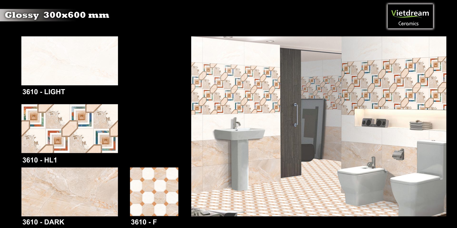 NK3610_300×600 Gạch Bộ Ốp Tường Phối Cảnh Khúc Uyển Chuyển