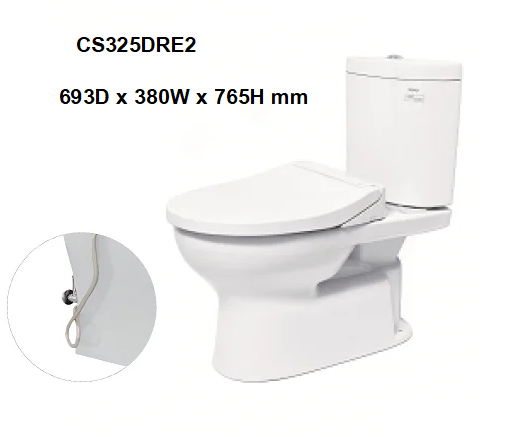 Kích thước: 693D x 380W x 765H mm Màu sắc: Trắng Hệ thống xả: Xi phông Lượng nước sử dụng: 4,8L/3L Hình dạng bồn cầu: Dài, Nửa chân bồn Đường kính bồn cầu: 305 mm Áp suất nước: 0,05 ~ 0,70 MPa Lưu ý: Có van chặn