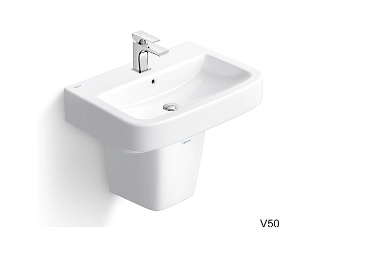 Chậu và Chân treo tường V50 nằm trong bộ sản phẩm Modelli - V50 Series của Viglacera. Với thiết kế kiểu dáng tinh tế, chậu chân treo tường V50 góp phần gia tăng tính thẩm mỹ cho không gian nhà tắm. Chất liệu sứ cao cấp cùng công nghệ men Nano Titan, giúp bề mặt chậu luôn sáng bóng và ngăn bám bẩn.