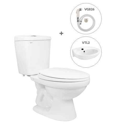 Tên sản phẩm: Bàn cầu hai khối VT34 (kèm Vòi xịt VG826 và Chậu VTL2 hoặc VTL3 hoặc VTL3N)