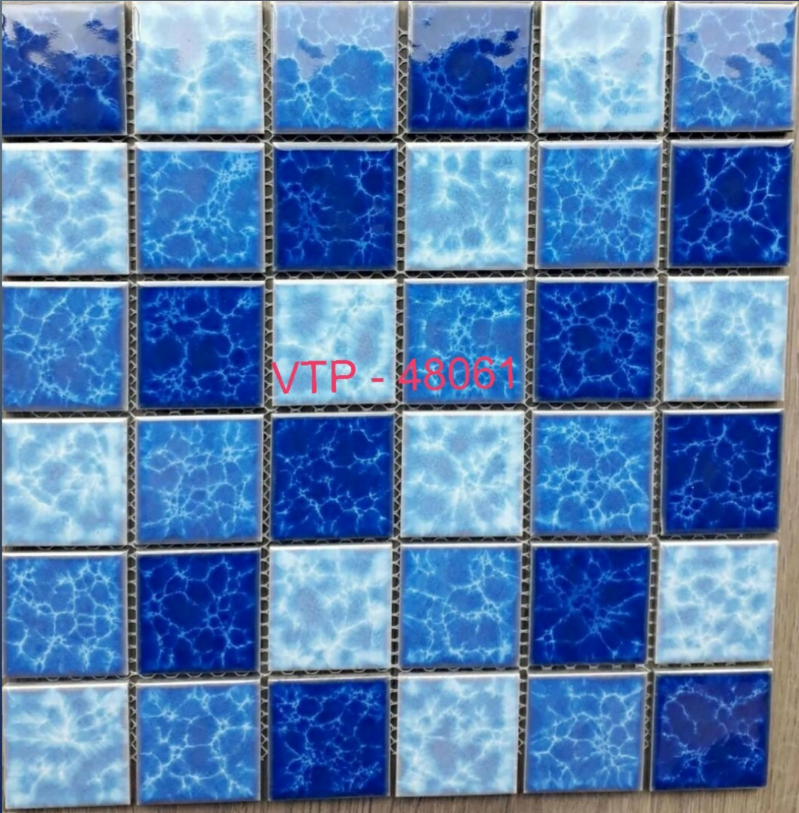 Gạch mosaic gốm được tạo ra từ khoáng đá thiên nhiên và gốm sau đó nung thời gian dài ở nhiệt độ từ 800 – 1300oC và được cán thành các viên nhỏ có kích thước 48 x 48 x 6mm và đóng thành vỉ lớn. Độ dày của gạch mosaic gốm (6mm) lớn hơn gạch mosaic thủy tinh (4mm) nên độ cứng, bền của gạch càng được đảm bảo.
